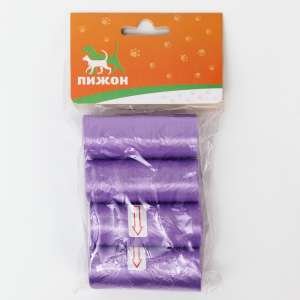 Пакеты для уборки за животными однотонные 4 рулона по 15 пакетов фиолетовые Пижон