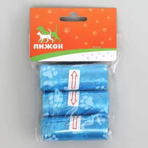 Пакеты для уборки за собаками однотонные 3 рулона по 15 пакетов микс цветов Пижон