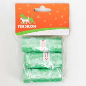 Пакеты для уборки за собаками однотонные 3 рулона по 15 пакетов зеленые Пижон