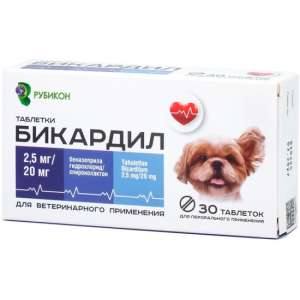 Бикардил 2,5мг/20мг 30таб для мелких пород 5-10кг ДВ Беназеприла гидрохлорид, спиронолактон